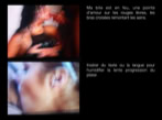 L’instant mal photographié dévoile une autre réalité, magique. Au balayage frénétique et vertical de la télétransmission, j’oppose le défilement lent et horizontal du diaporama. Cette cadence de transition pose le problème de la contemplation à l'heure des nouveaux médias. Aux lumières naturelles, s’opposent des esthétiques qui nous éblouissent par la force des lumières électroniques. L’absence du son est volontaire. Ces présentations dévoilent une télévision devenue système à fabriquer des mythes,. Mais derrière ces images, il y a des pudeurs que je n’ai pas encore osé nommer.