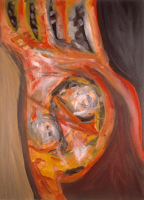 Ma dérive vers l’abstraction est l’insatisfaction d’une peinture réaliste non maîtrisée. Ces séries présentent toujours la figure tendre vers une abstraction. Le plaisir est intense et ce moment est une expérience qui recherche le point de basculement entre forme et informe. C’est un fils tendu entre la réalité et la folie. C’est une porte qui laisse entrevoir le gouffre de mon imaginaire.