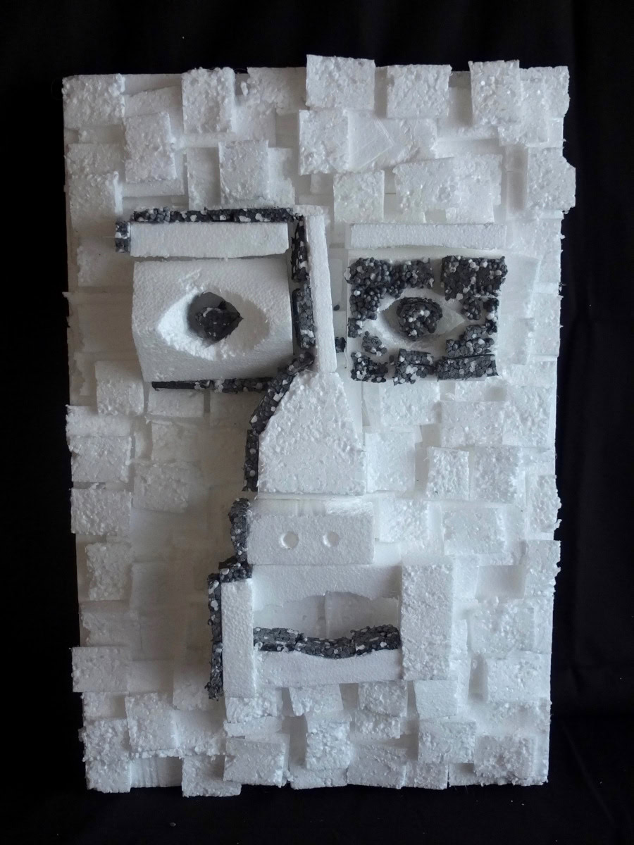 Je fais avec ce que je trouve. Tout matériau est susceptible d’être converti en matière première précieuse. C’est du récup’ art et c’est à la mode. J’ai commencé ce travail vers 2013 puisque j’ai donné une de mes premières compositions en polystyrène à l’installation de mon voisin.